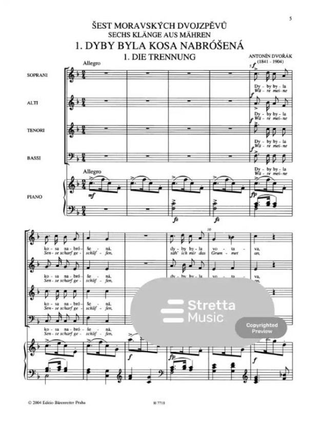 Antonín Dvořák: 6 Moravian Duets Arranged By Leoš Janáček (noty na sborový zpěv, klavír)