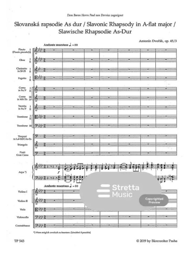 Antonín Dvořák: Slavonic Rhapsody In A-Flat Major (noty, studijní partitura)