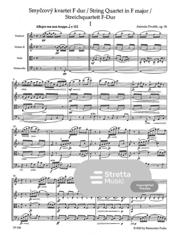 Antonín Dvořák: String Quartet No. 12 in F Major Op. 96 (noty, studijní partitura)