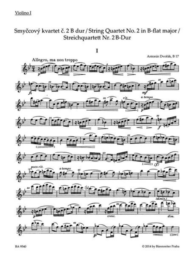 Antonín Dvořák: String Quartet No. 2 In B-flat B 17 (noty pro smyčcový kvartet, party)