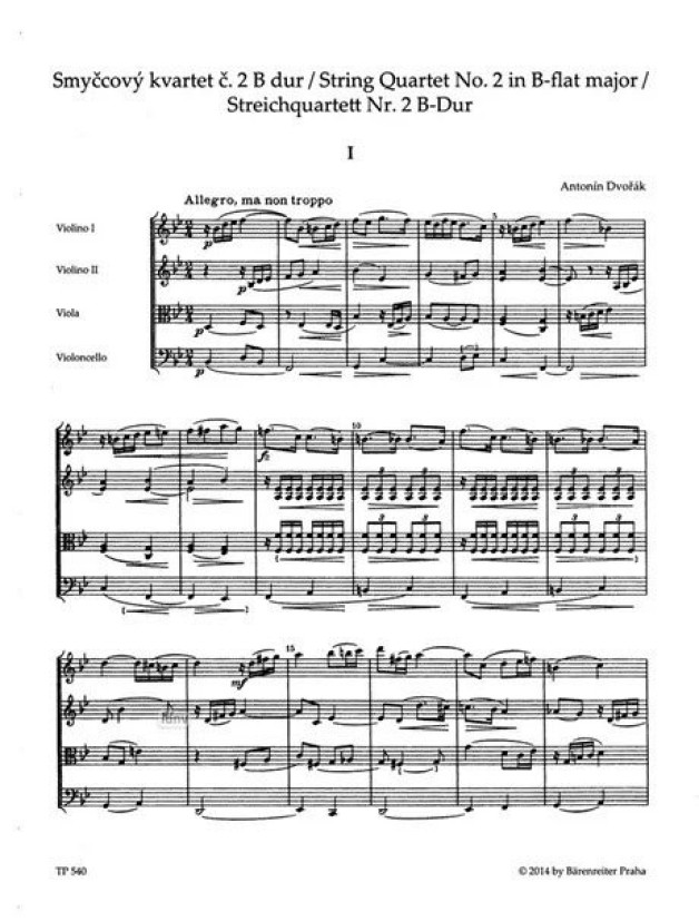 Antonín Dvořák: String Quartet No. 2 In B-Flat B17 (noty, studijní partitura)