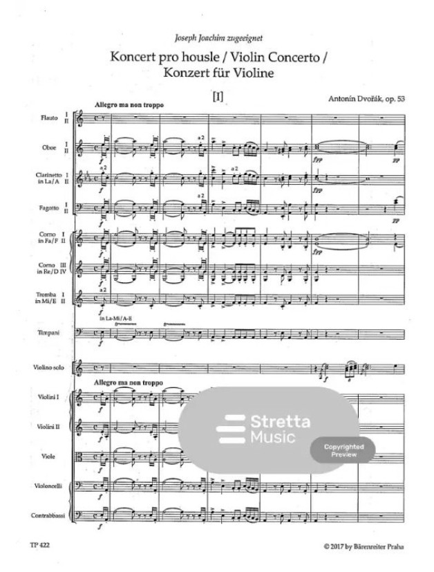 Antonín Dvořák: Violin Concerto In A minor Op.53 (noty, studijní partitura)