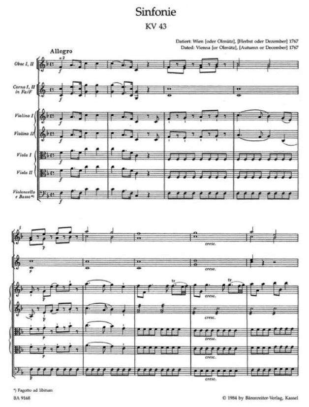 W.A. Mozart: Symphony In F Major 'No. 6' KV 43 (noty, partitura)