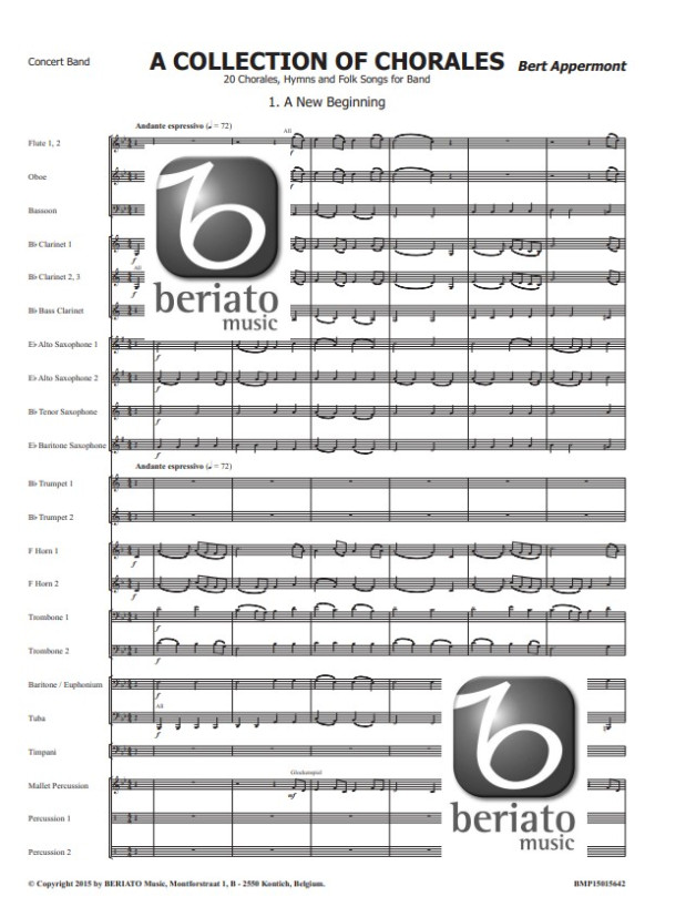 Bert Appermont: A Collection of Chorales (noty pro koncertní orchestr, party, partitura)