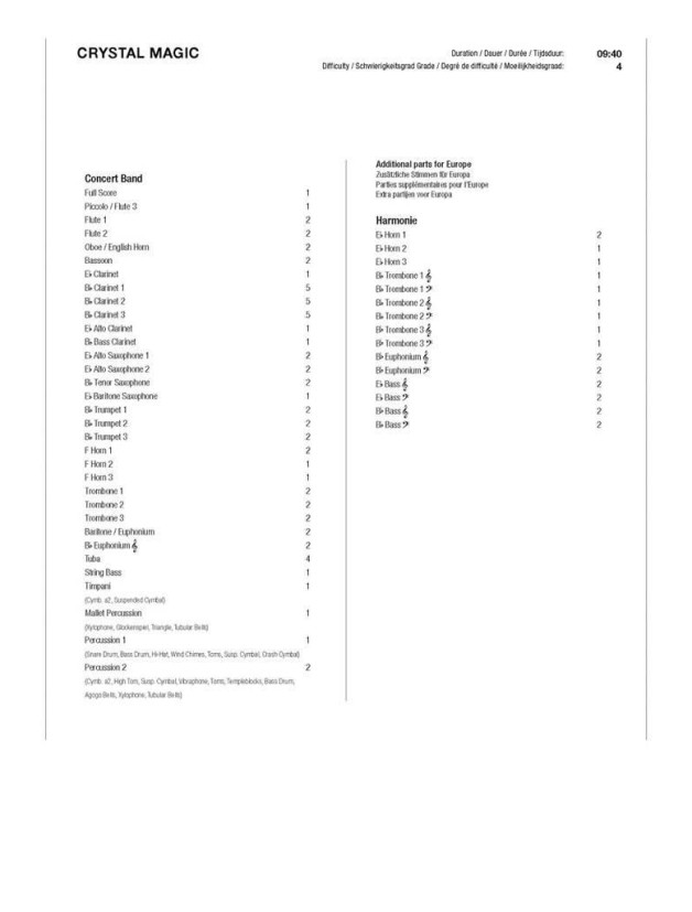Bert Appermont: Crystal Magic (noty pro koncertní orchestr, party, partitura)