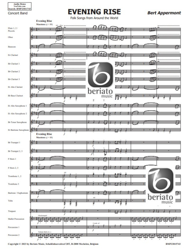 Bert Appermont: Evening Rise (noty pro koncertní orchestr, party, partitura)