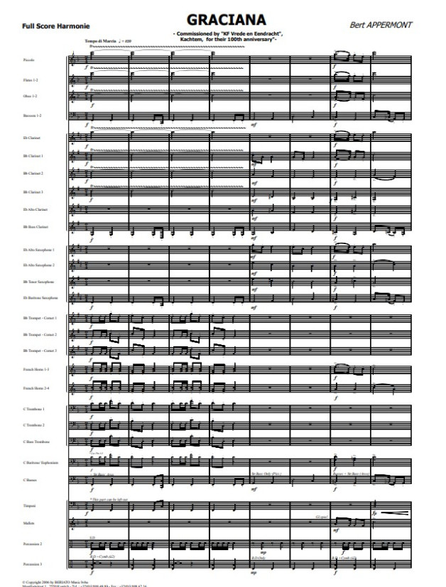 Bert Appermont: Graciana (noty pro koncertní orchestr, party, partitura)