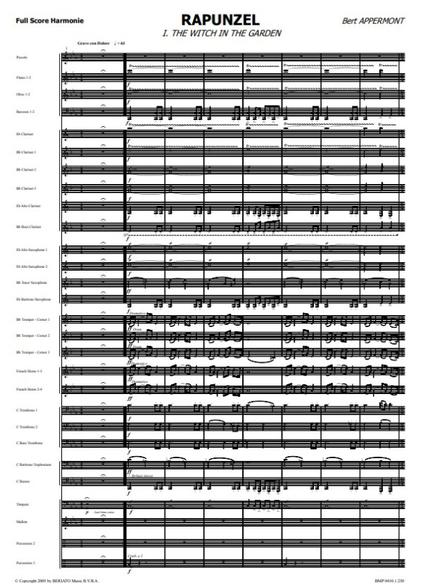 Bert Appermont: Rapunzel (noty pro koncertní orchestr, party, partitura)