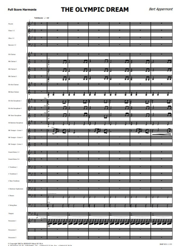 Bert Appermont: The Olympic Dream (noty pro koncertní orchestr, party, partitura)