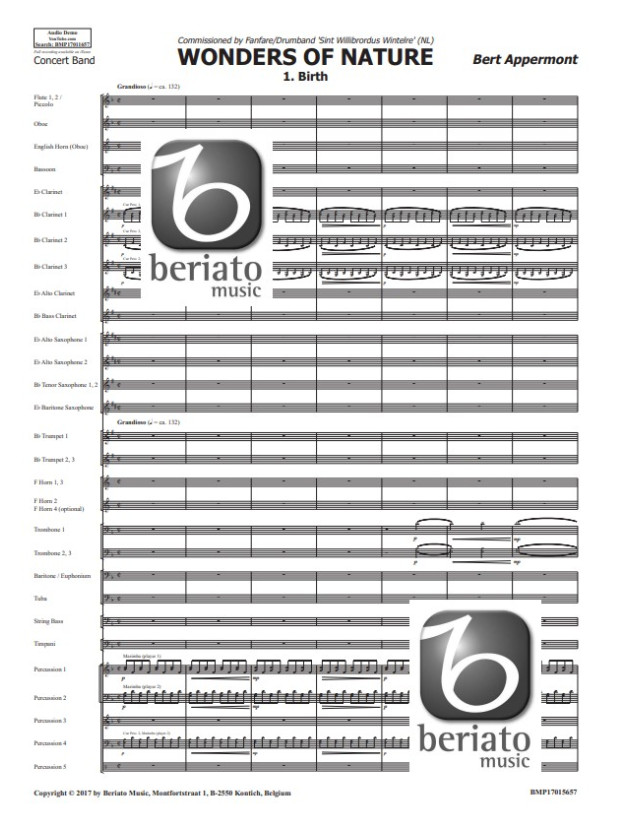 Bert Appermont: Wonders of Nature (noty pro koncertní orchestr, party, partitura)