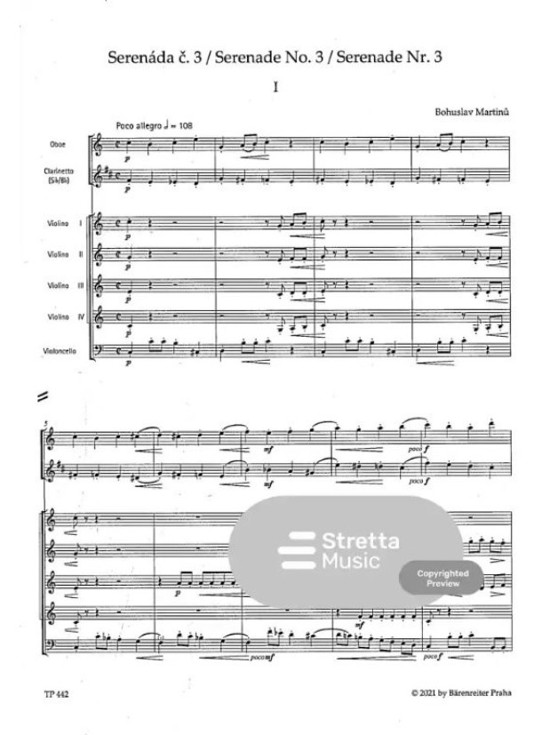 Bohuslav Martinů: Serenade no. 3 (noty, studijní partitura)