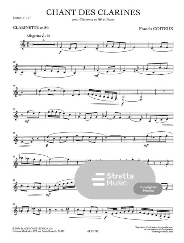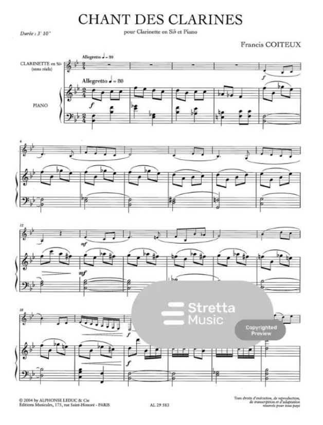 Francis Coiteux: Chant Des Clarines (noty na klarinet, klavír)