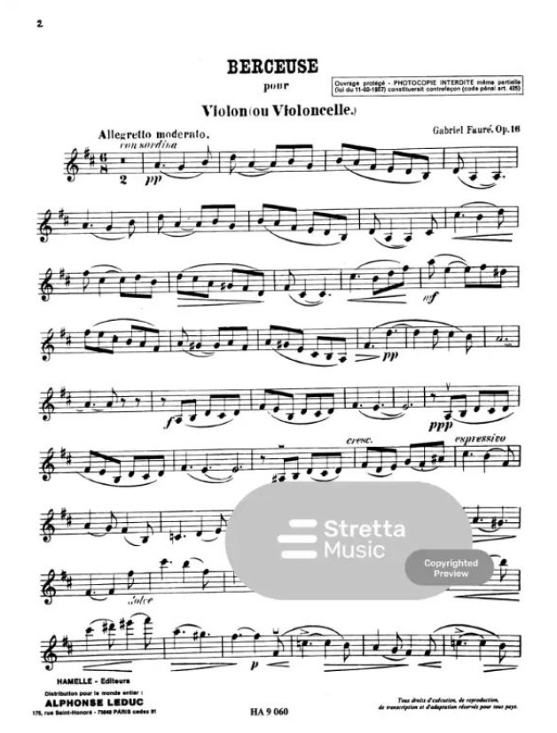 Gabriel Fauré: Berceuse Op.16 (noty housle či violu nebo violoncello, klavír)