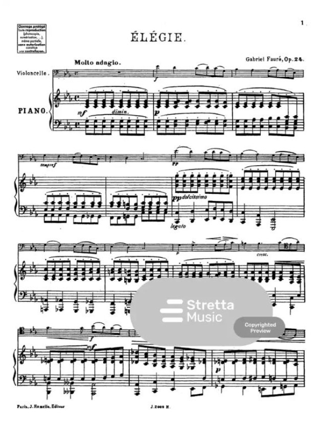 Gabriel Fauré: Elégie Opus 24 (noty housle či violoncello, klavír)
