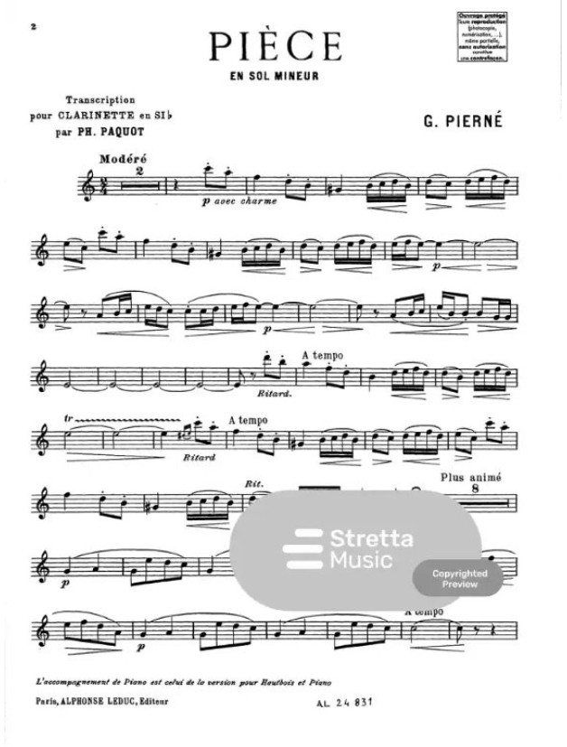 Gabriel Pierné: Piece in G minor (noty na klarinet, klavír)