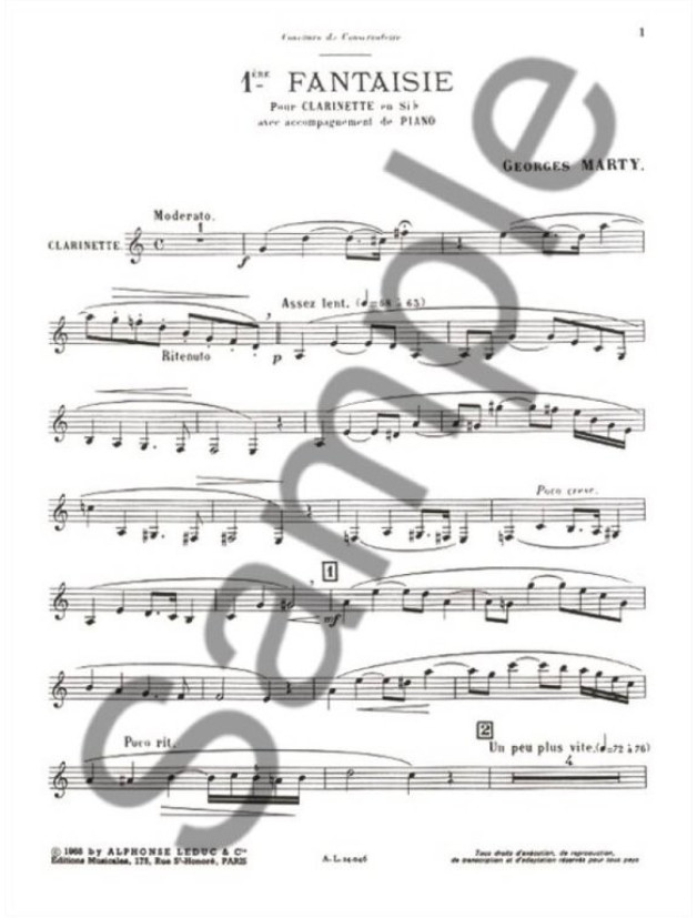 Georges Marty: Fantaisie No.1 (noty na klarinet, klavír)