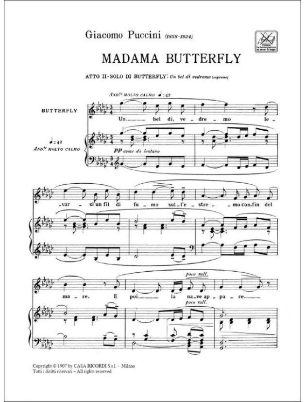 Giacomo Puccini: Un Bel Di' Vedremo (noty na klavír, zpěv)