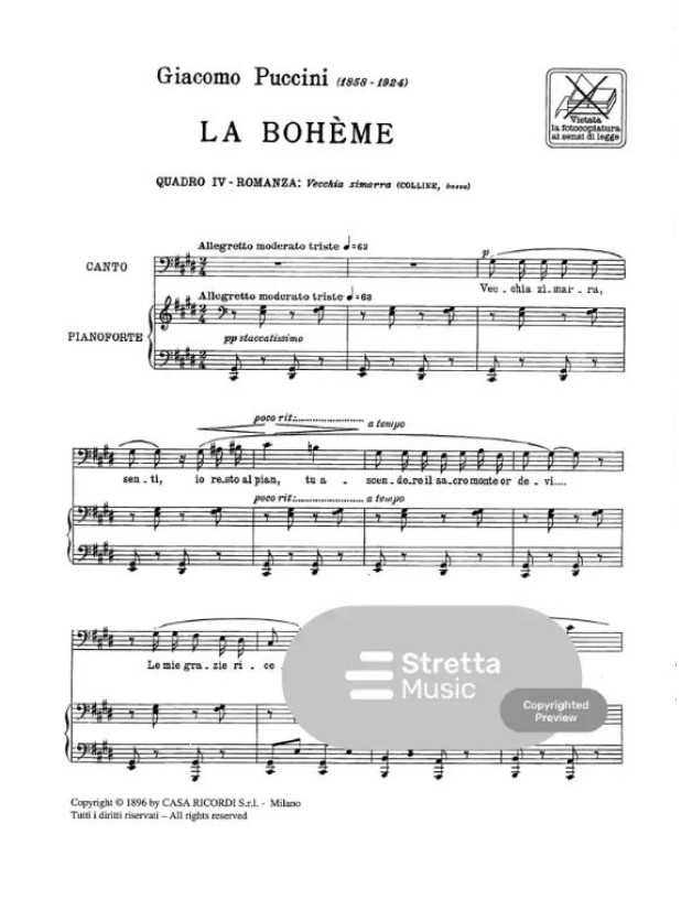 Giacomo Puccini: Vecchia Zimarra, Senti (noty na klavír, zpěv)