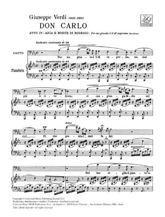 Giuseppe Verdi: Per Me Giunto E' Il Di' Supremo (noty na klavír, zpěv)