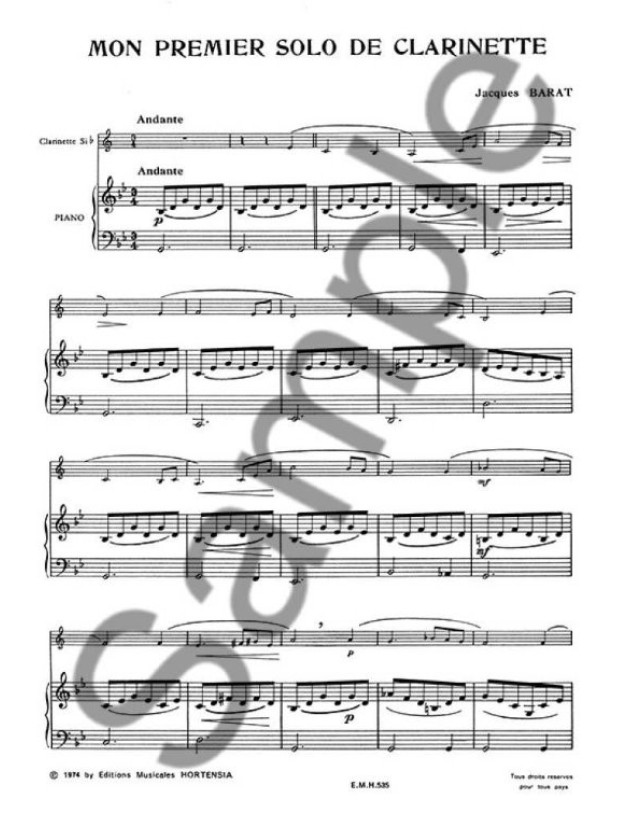 Jacques Barat: Mon Premier Solo De Clarinette (noty na klarinet, klavír)
