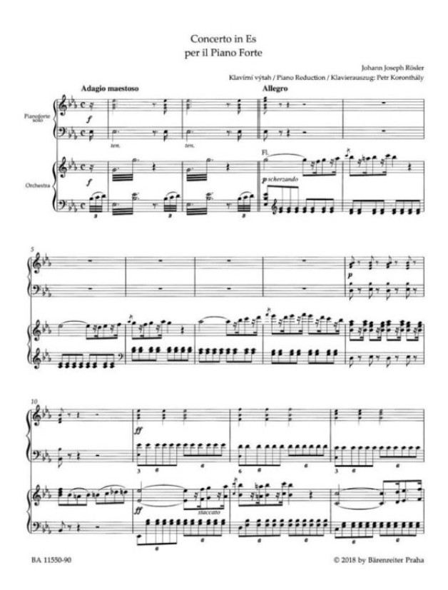 Jan Josef Rösler: Concerto No. 2 in E-flat major (noty klavír, zpěv)
