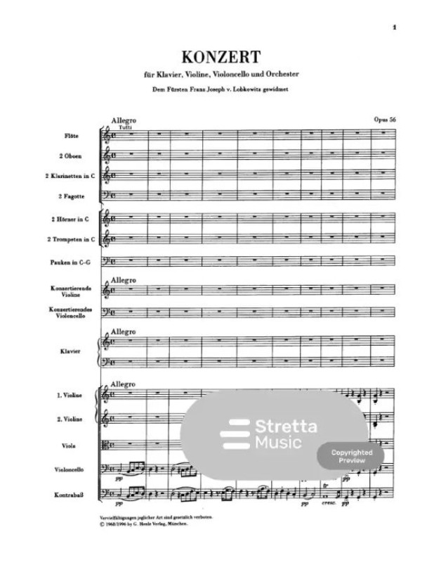 Beethoven: Concerto for Piano, Violin, Violoncello and Orchestra in C major op. 56 (noty, studijní partitura)