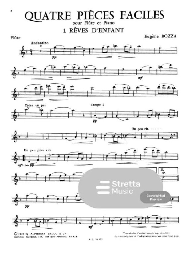 Eugéne Bozza: 4 Piéces Faciles (noty na příčnou flétnu, klavír)