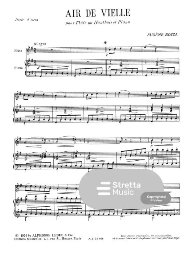 Eugéne Bozza: Air de Vielle (noty na příčnou flétnu, klavír)