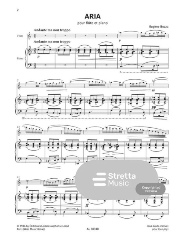Eugéne Bozza: Aria (noty na příčnou flétnu, klavír)