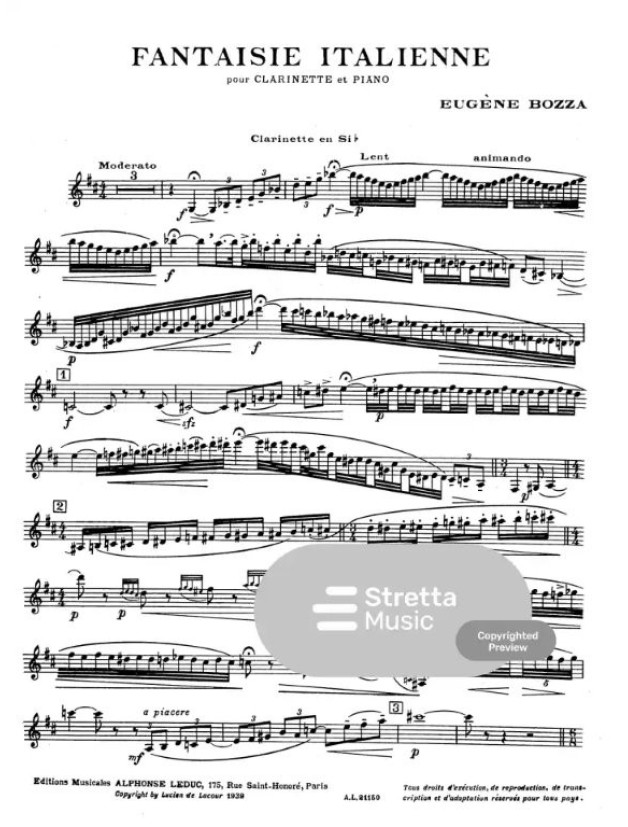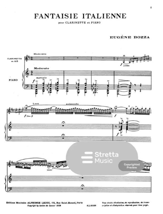Eugéne Bozza: Fantaisie Italienne (noty na klarinet, klavír)