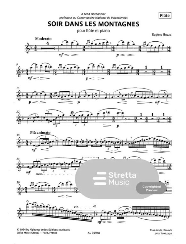 Eugéne Bozza: Soir dans les montagnes (noty na příčnou flétnu, klavír)