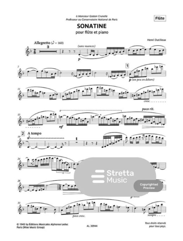 Henri Dutilleux: Sonatine (noty na příčnou flétnu, klavír)