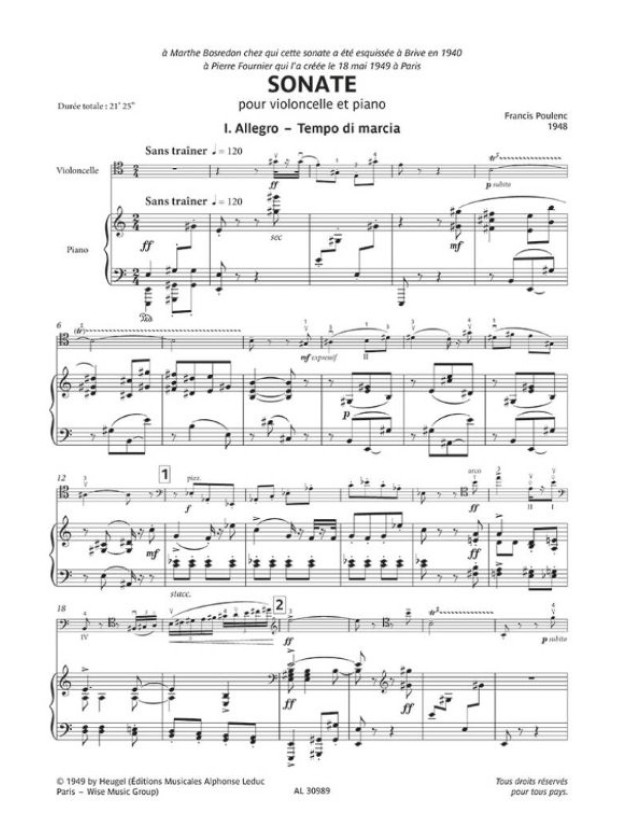 Francis Poulenc: Sonate (noty na violoncello, klavír)