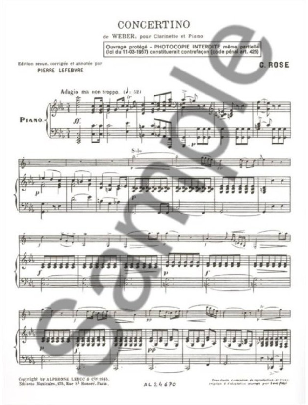 Cyrille Rose: Concertino Op 26 de Weber (noty na klarinet, klavír)