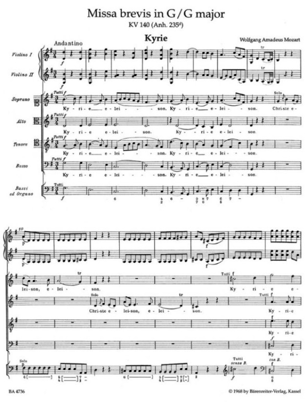 W.A. Mozart: Missa brevis in G major K.140 (noty, partitura)