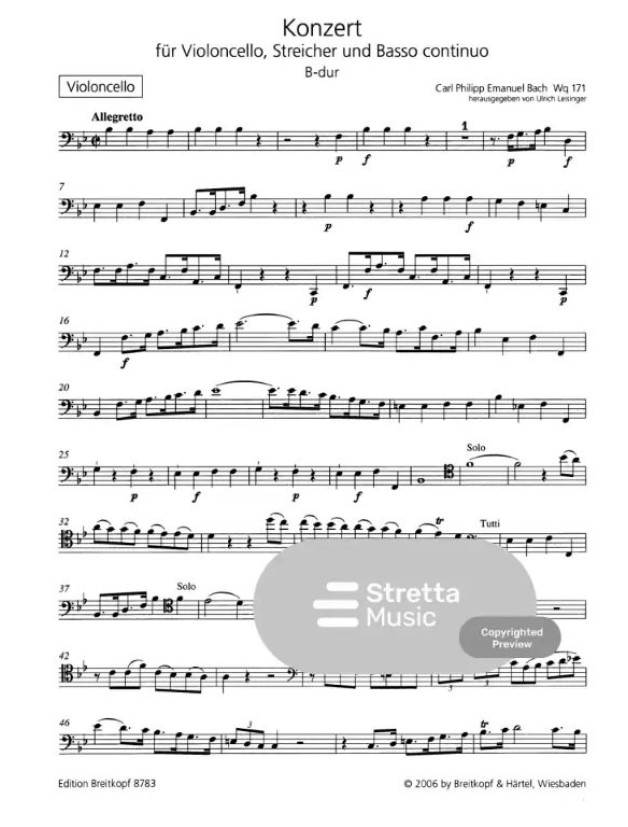 Carl Philipp Emanuel Bach: Konzert B-dur Wq 171 (noty na violoncello, klavír)