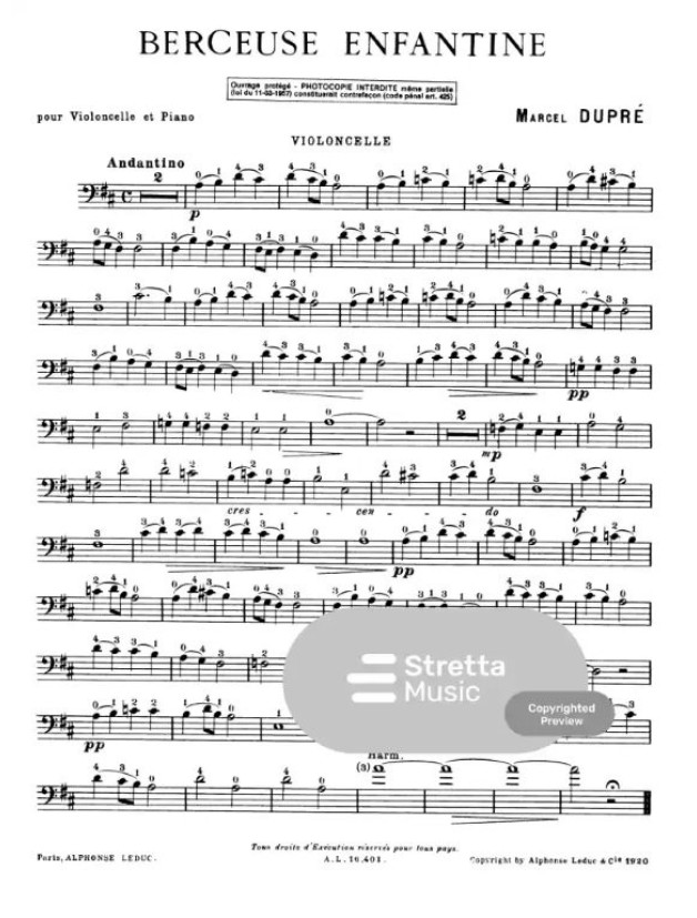Marcel Dupré: Berceuse Enfantine (noty na violoncello, klavír)