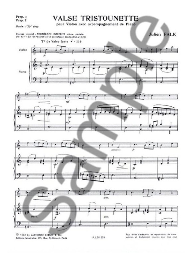 Julien Falk: Valse Tristounette (noty na housle, klavír)