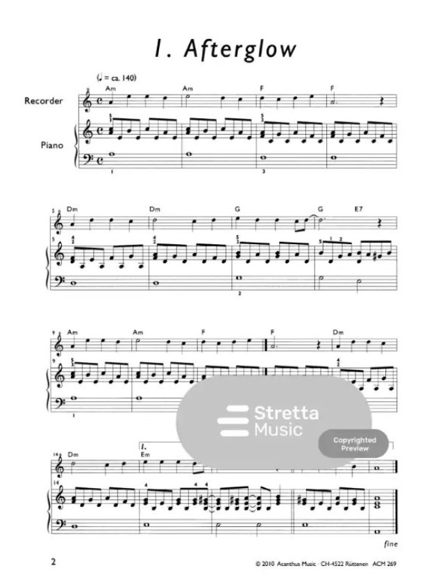 Aranžmá Noty na sopránovou zobcovou flétnu, klavír