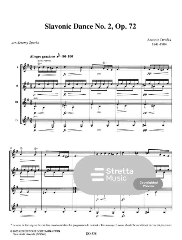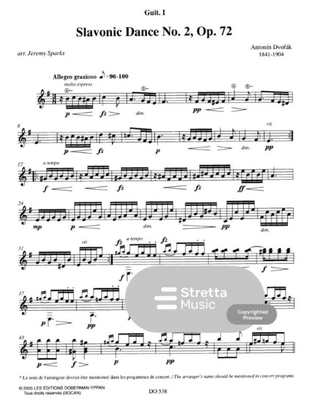 Antonín Dvořák: 2 Slavonic Dances (noty pro kytarový soubor, party, partitura)