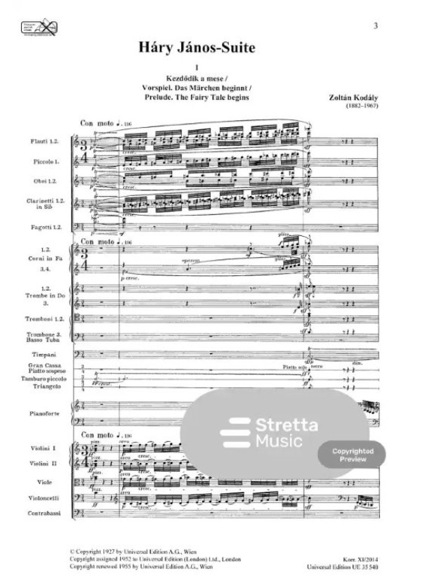 Zoltán Kodály: Háry János-Suite (noty, studijní partitura)
