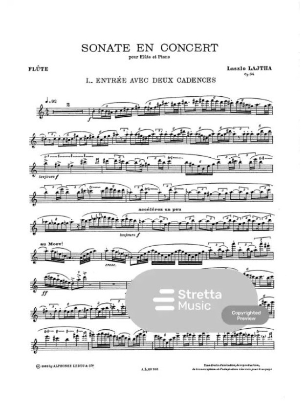 Laszlo Lajtha: Sonate En Concert Op.64 (noty na příčnou flétnu, klavír)