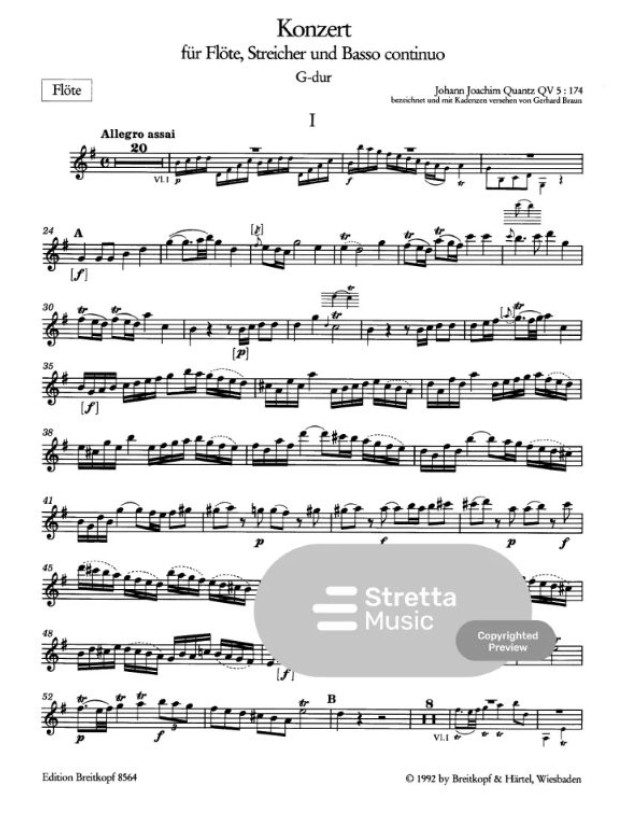 Johann Joachim Quantz: Flötenkonzert G-dur QV 5:174 / Flute Concerto (noty na příčnou flétnu, klavír)