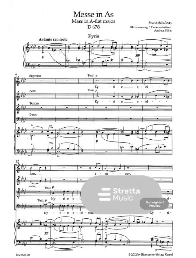 Franz Schubert: Mass in A-flat major D 678 (noty na klavír, zpěv)