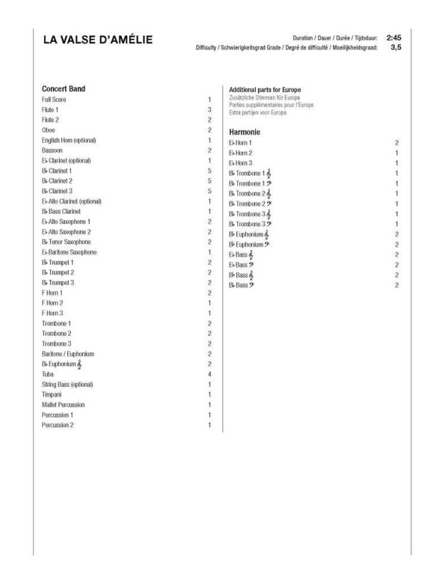 Yann Tiersen: La Valse d'Amélie (noty pro koncertní orchestr, party, partitura)