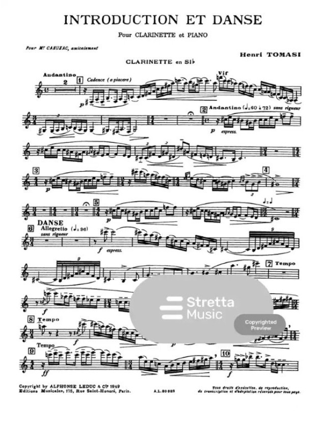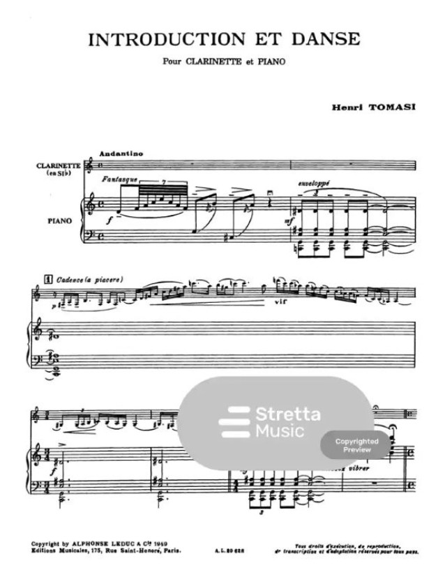 Henri Tomasi: Introduction et Danse (noty na klarinet, klavír)
