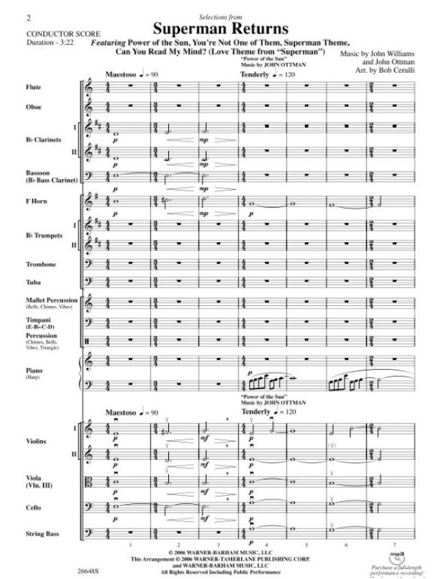 John Williams: Selections from Superman Returns (noty pro symfonický orchestr, party, partitura)
