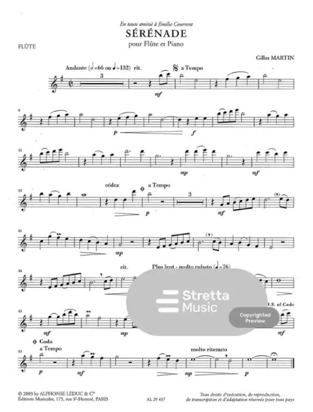 Gilles Martin: Serenade (noty na příčnou flétnu, klavír)