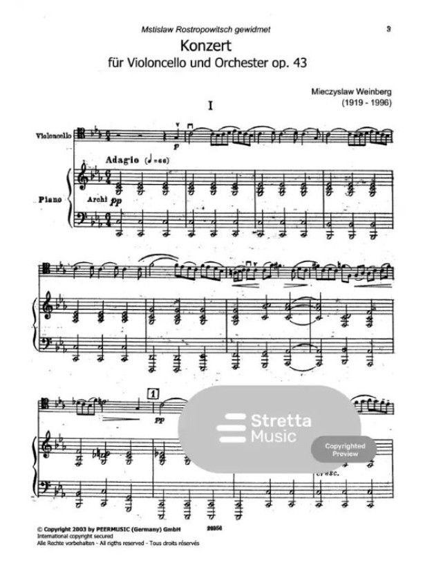 Mieczyslaw Weinberg: Concerto for Violoncello and Orchestra op. 43 (noty na violoncello, klavír)