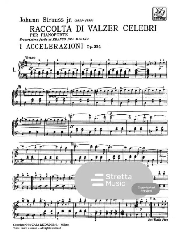 Johann Strauss: Raccolta Di Valzer Celebri (noty na klavír)